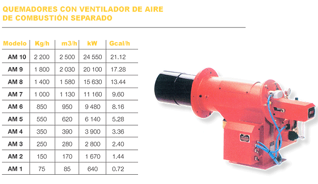 - Se suministran quemadores estándar con atomización mecánica. Existen modelos con atomización con vapor o aire comprimido para combustibles de alta viscosidad.